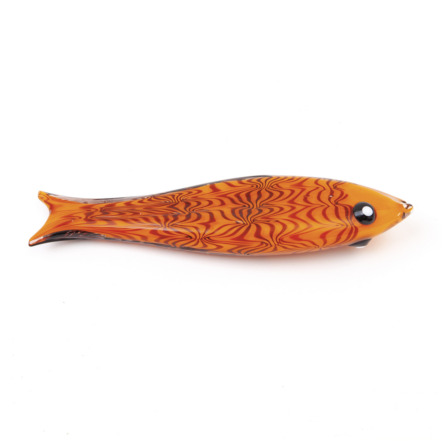 Un pesce in vetro corallo con decoro fenicio nero modello '11059' 1951.