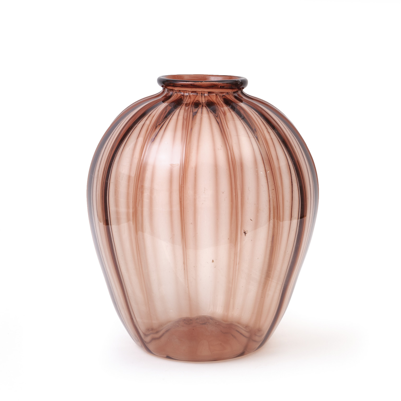 Un grande vaso costolato in vetro trasparente ametista circa 1925.