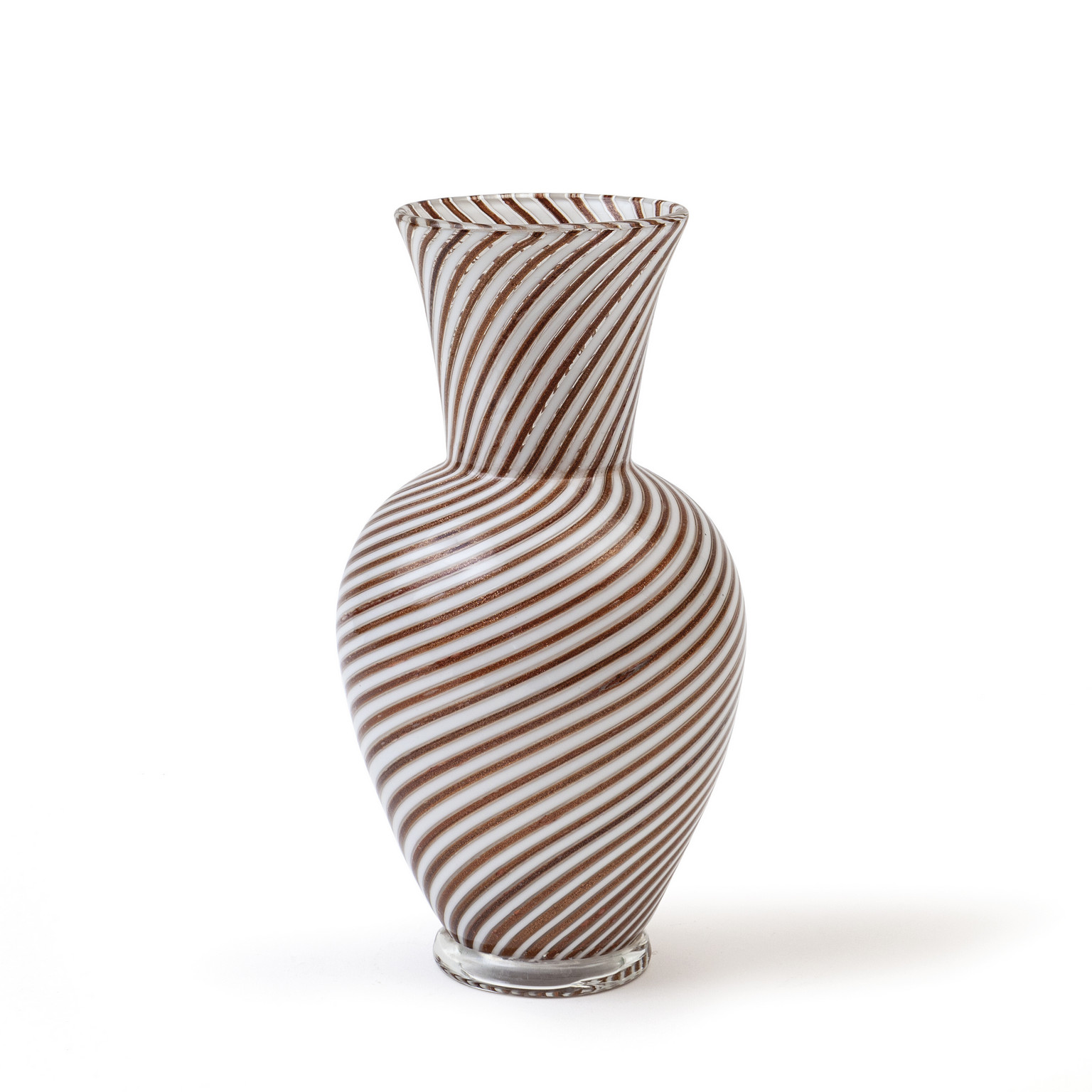 Un vaso a canne lattimo e avventurina ritorte a spirale anni '50.