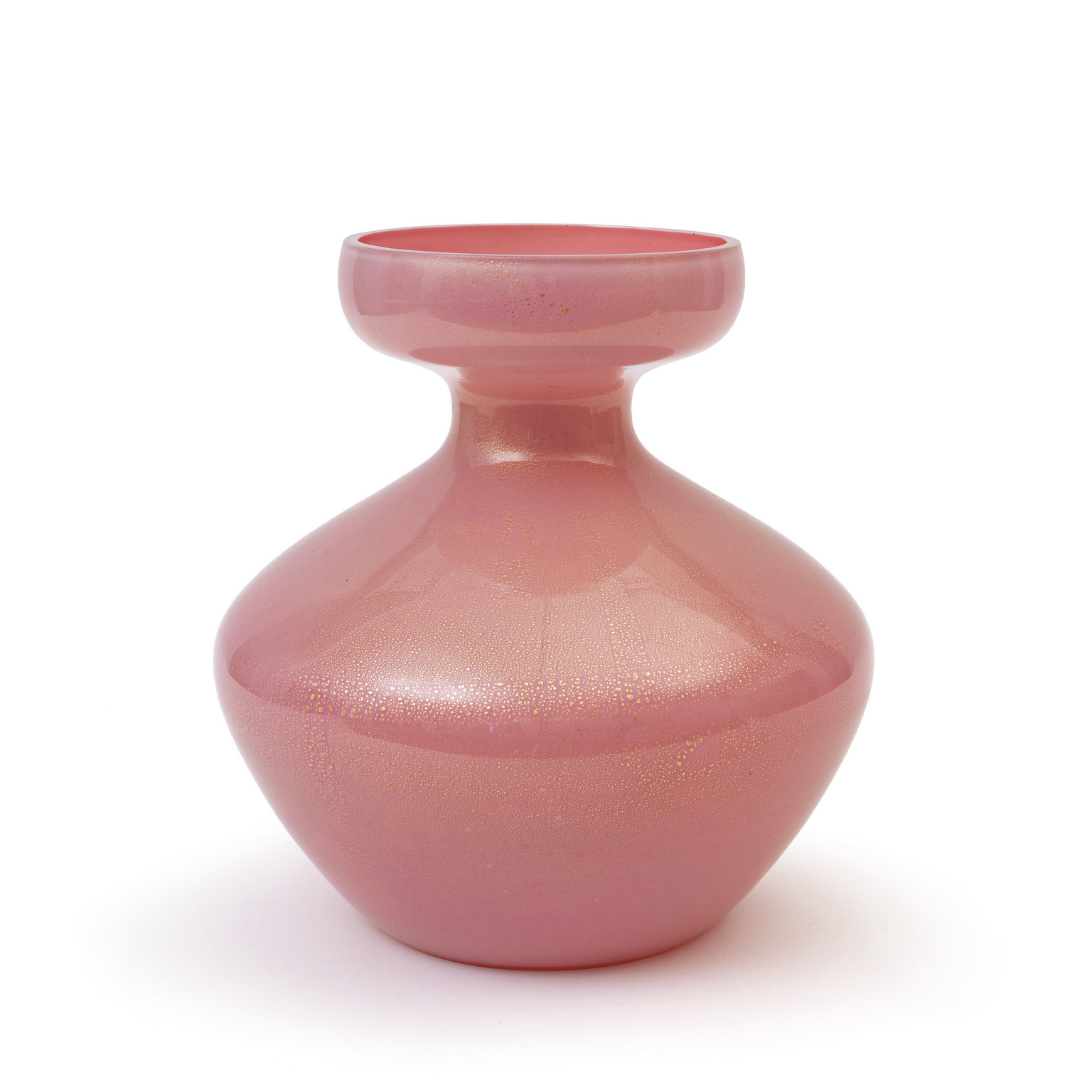 Un vaso incamiciato rosa-lattimo e foglia d'oro circa 1950.