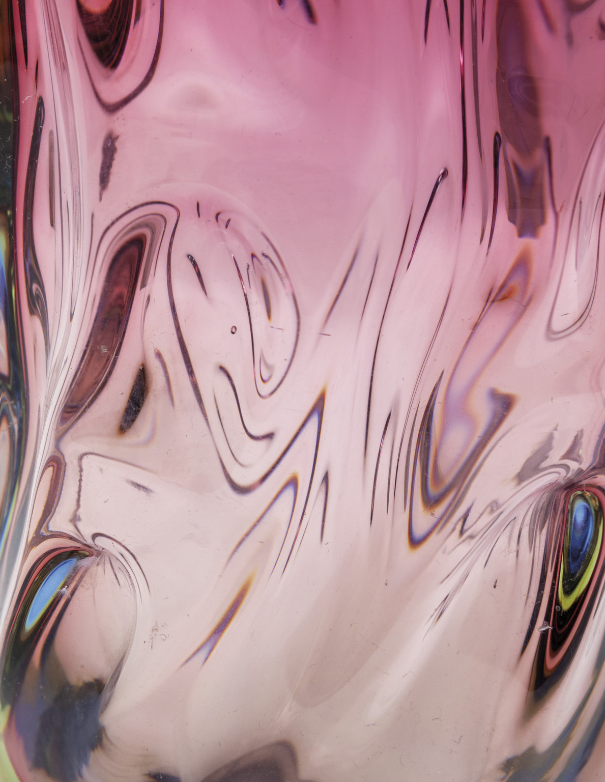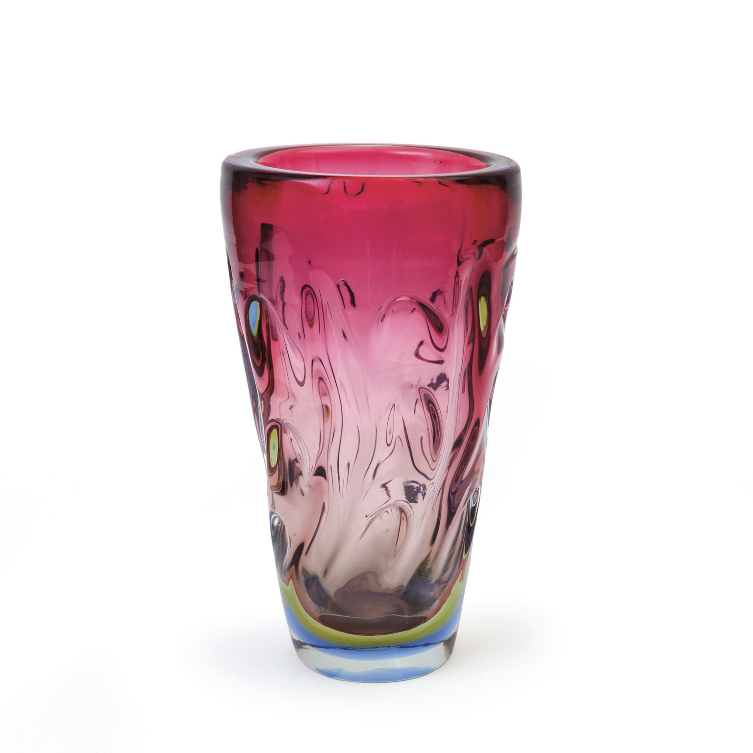 Un vaso in vetro sommerso sfumato con rilievi circa 1950.
