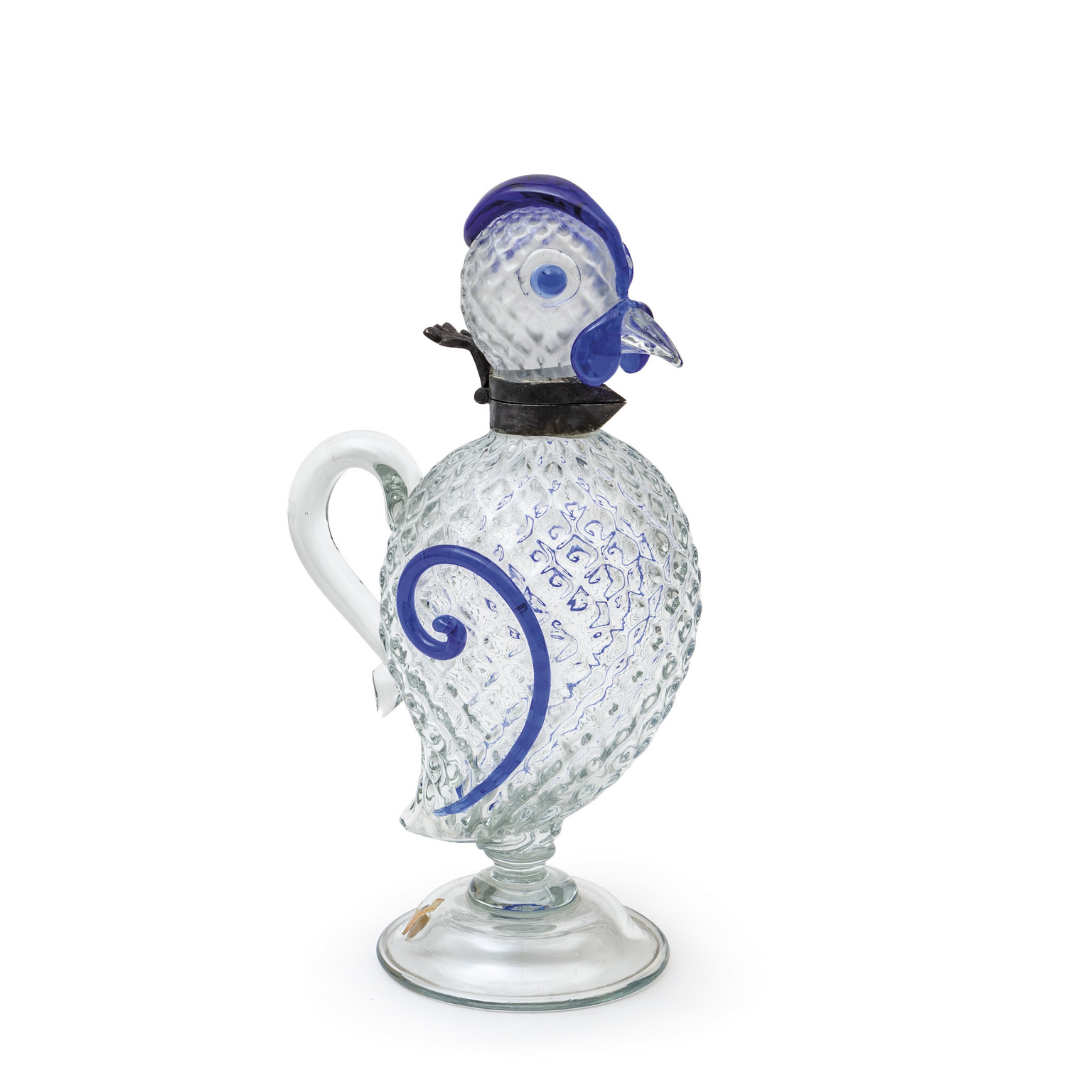 Una brocca 'Gallo' in cristallo antico decoro acquamarina modello '13372' 1957.