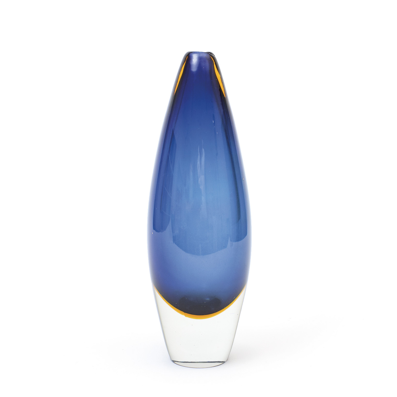 Un vaso in vetro sommerso blu e ambra circa 1955.