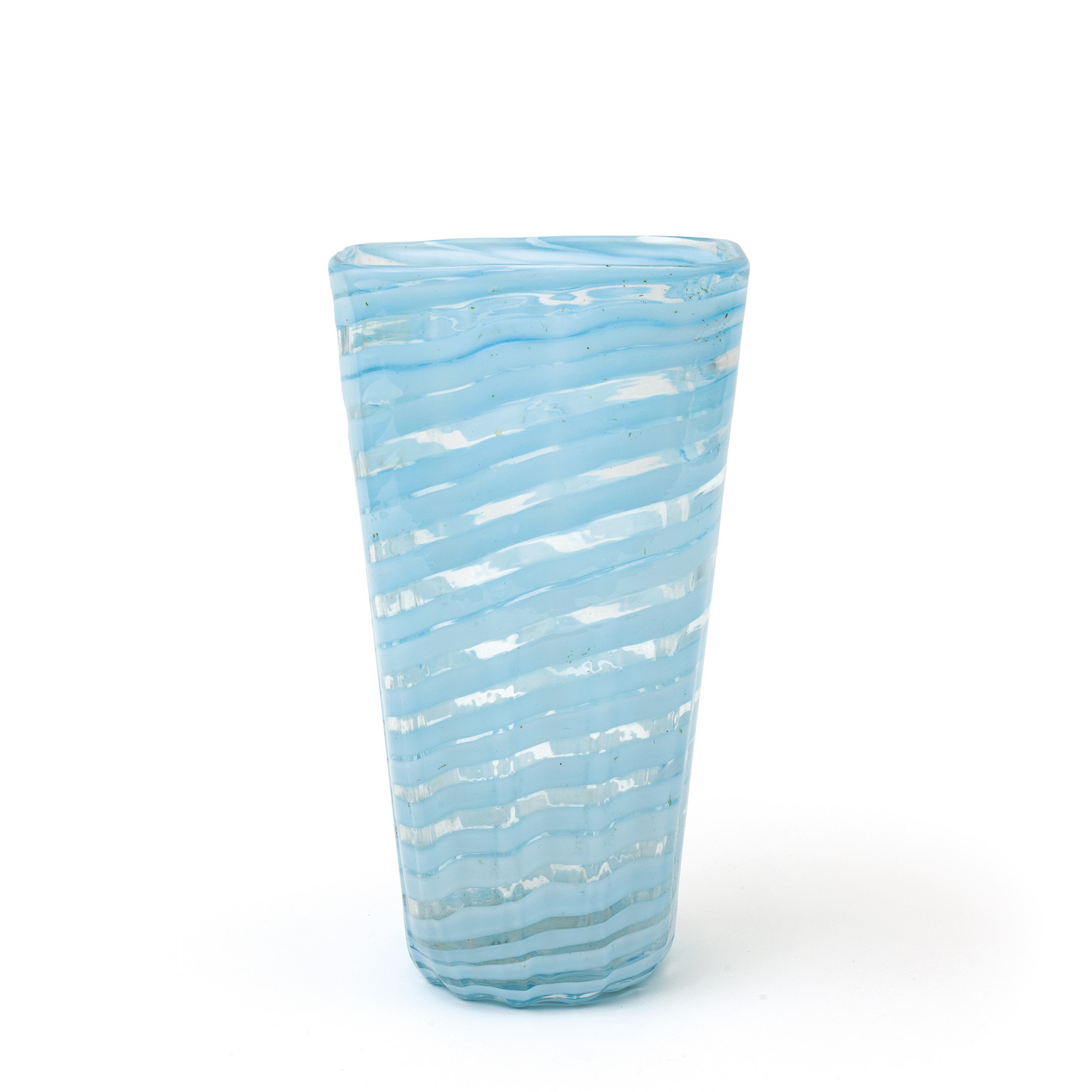 Un vaso in cristallo con spirale azzurro-lattimo circa 1950.