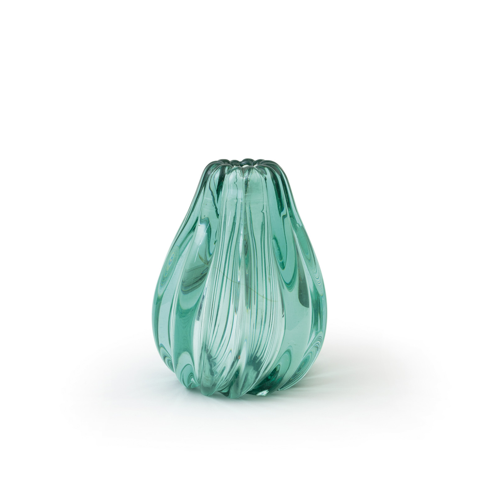Un vaso costolato in vetro trasparente verdino modello 7799 1942.