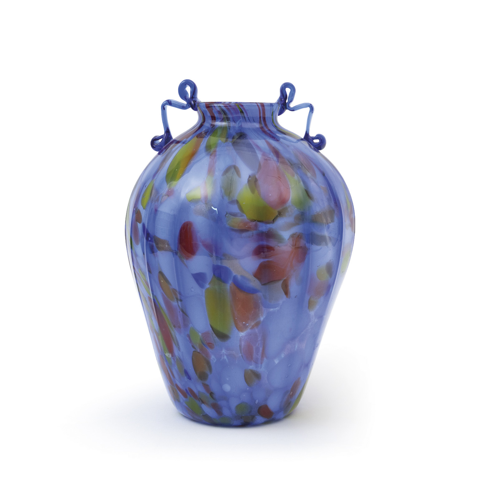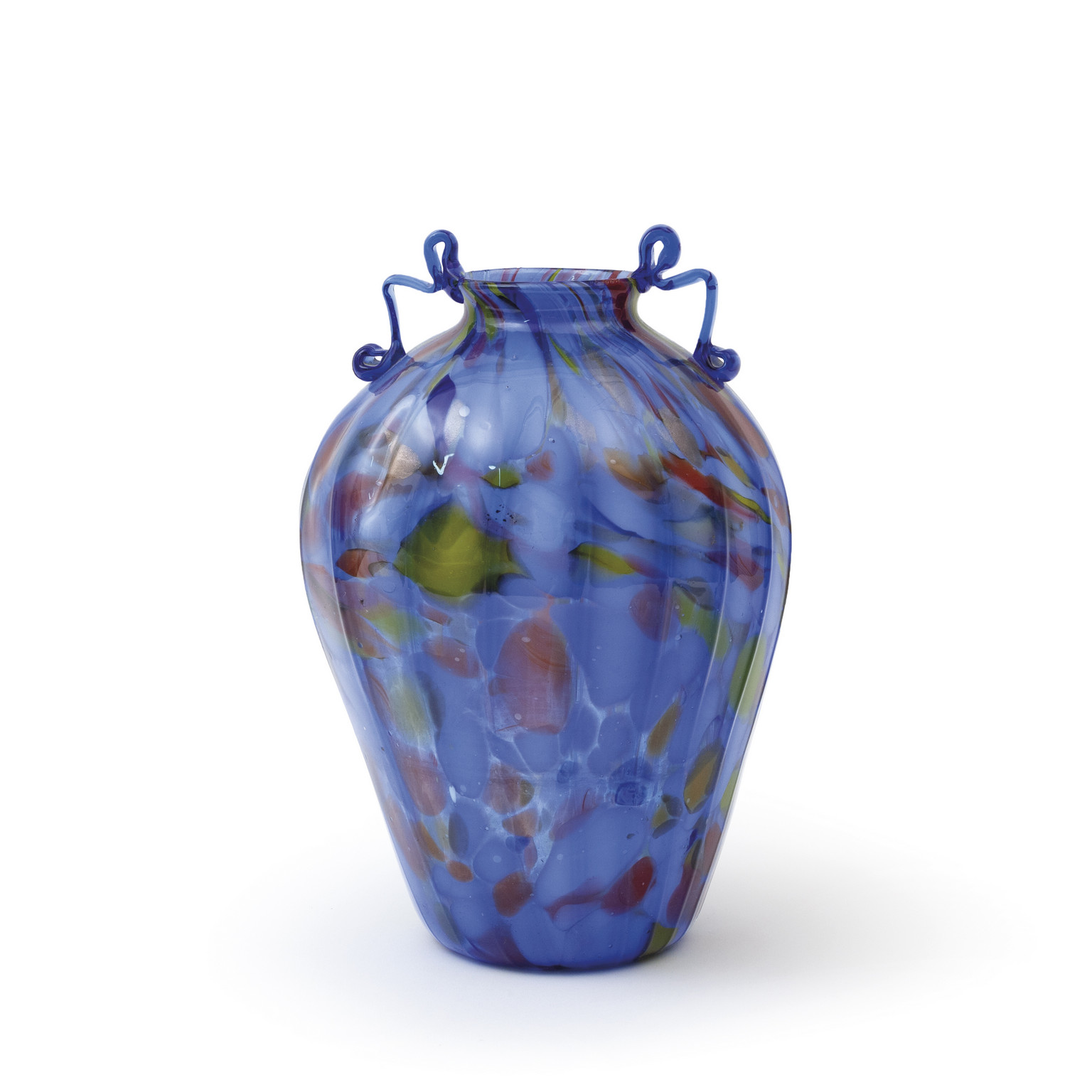 Un vaso bi-ansato azzurro a grandi macchie lattimo e avventurina anni '20.