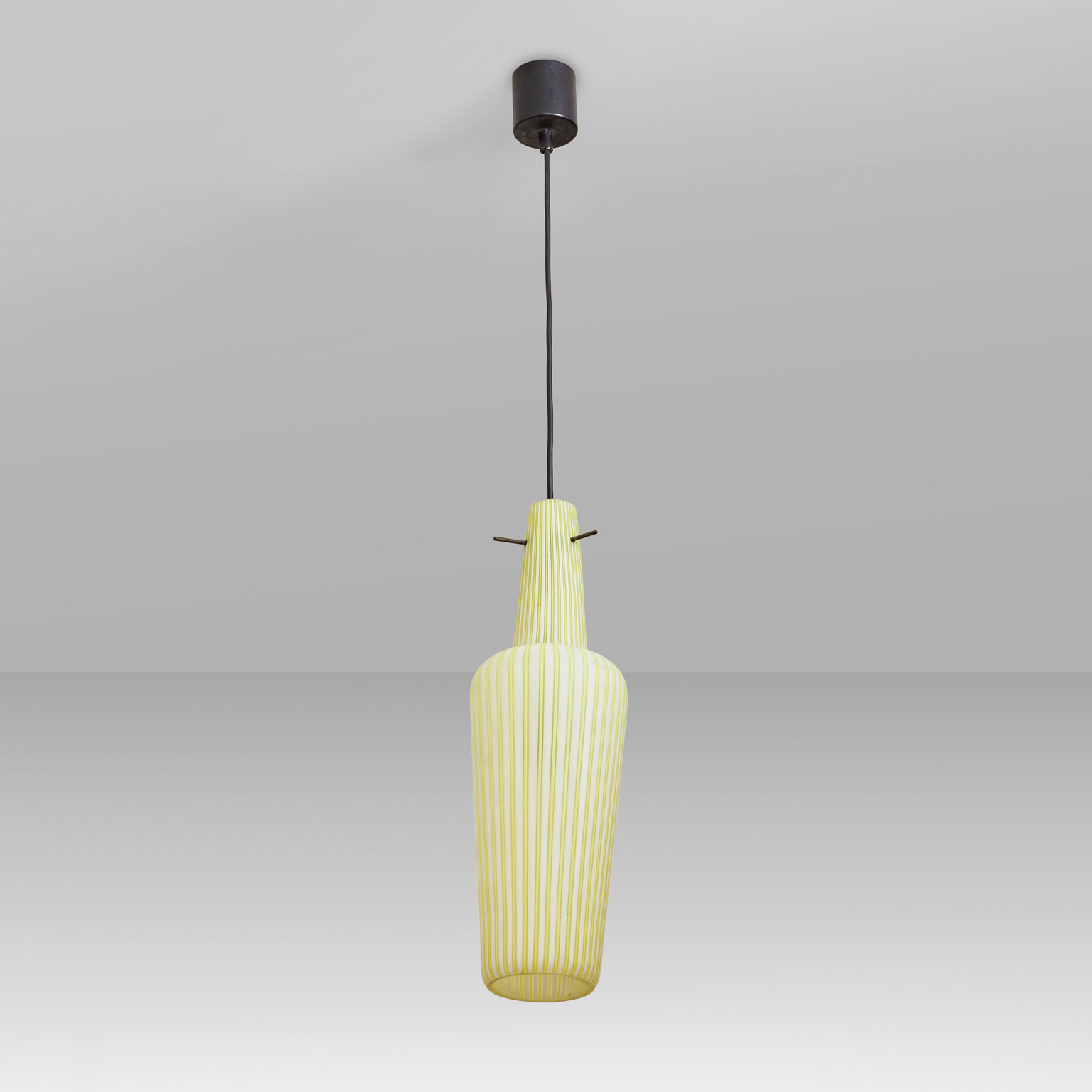 Una lampada a sospensione in vetro soffiato a canne verticali anni '60.