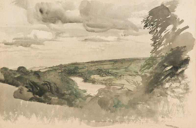 Pietro Annigoni Wyc valley, anni '60 Gouache su carta, cm. 38,6x57 Firma e titolo in basso a destra. Autentica dell'Artista su foto. Esposizione: Assisi Museo di San Pietro, 9 Luglio, 30 Ottobre 2006, pubblicato sul catalogo della mostra, "Pietro Annigoni, Oltre l'apparenza", pag. 146.