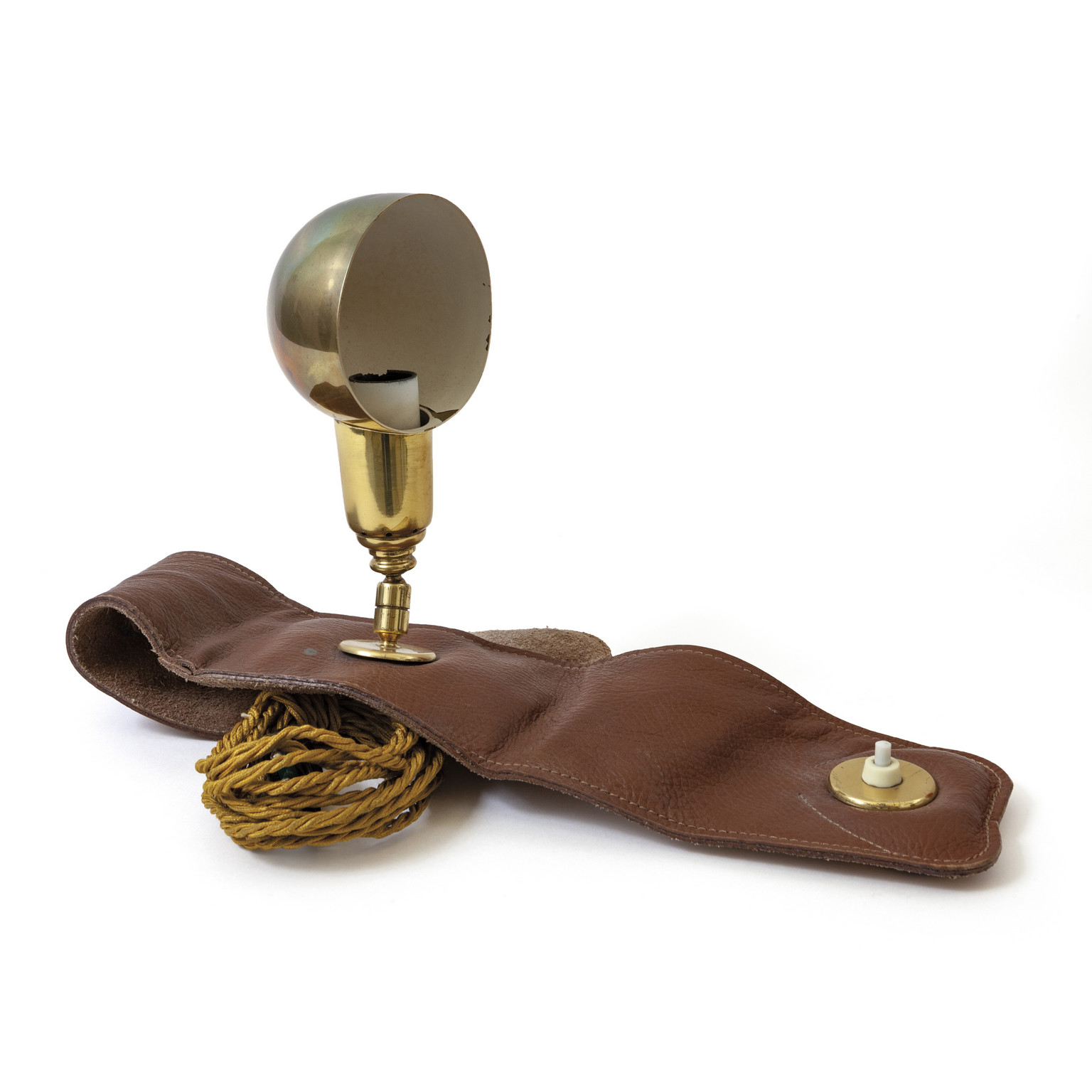 An armchair lamp manufactured by AZUCENA 1950's. Leather brass.