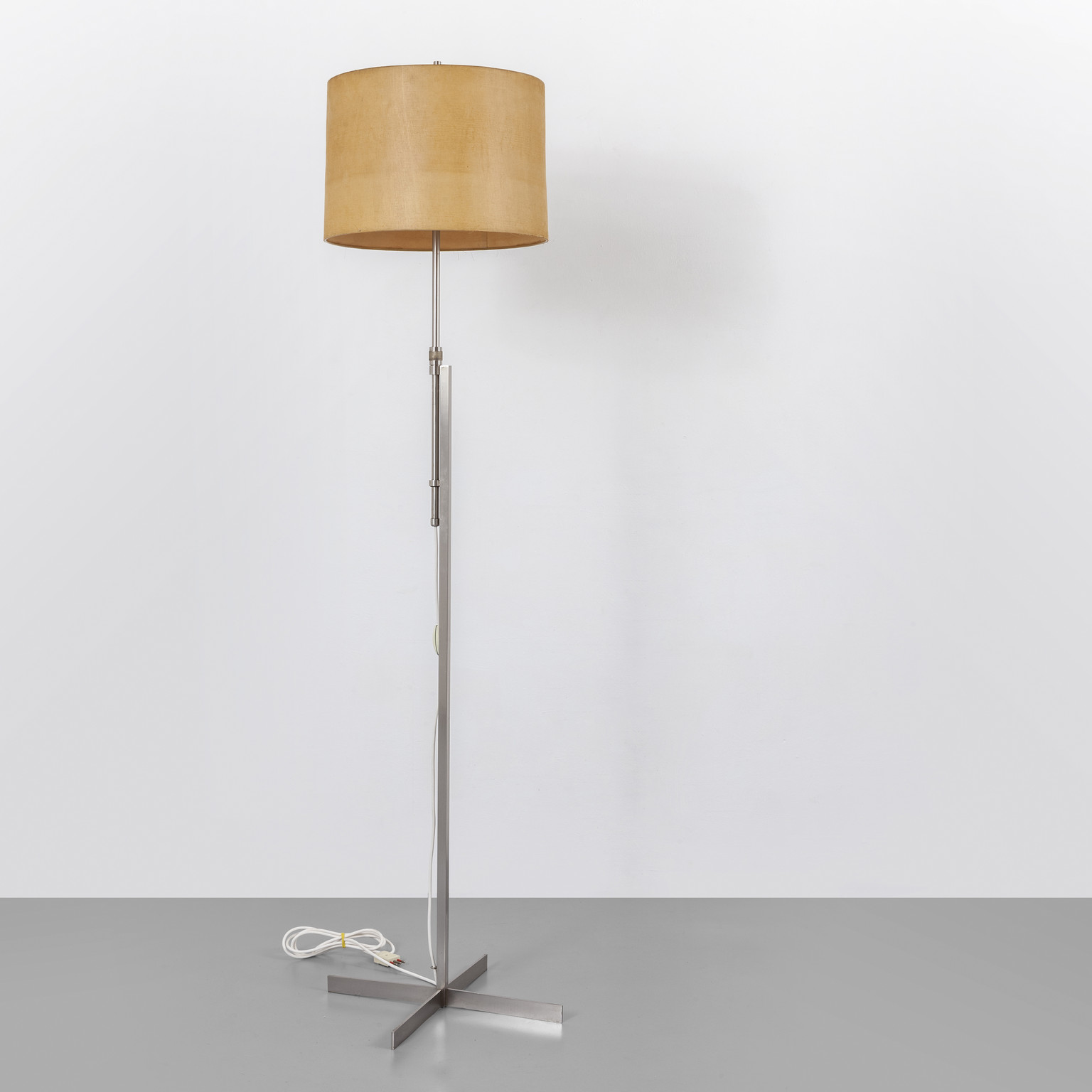 Acciaio nichelato. Paralume di carta telata. Etichetta Stilnovo.