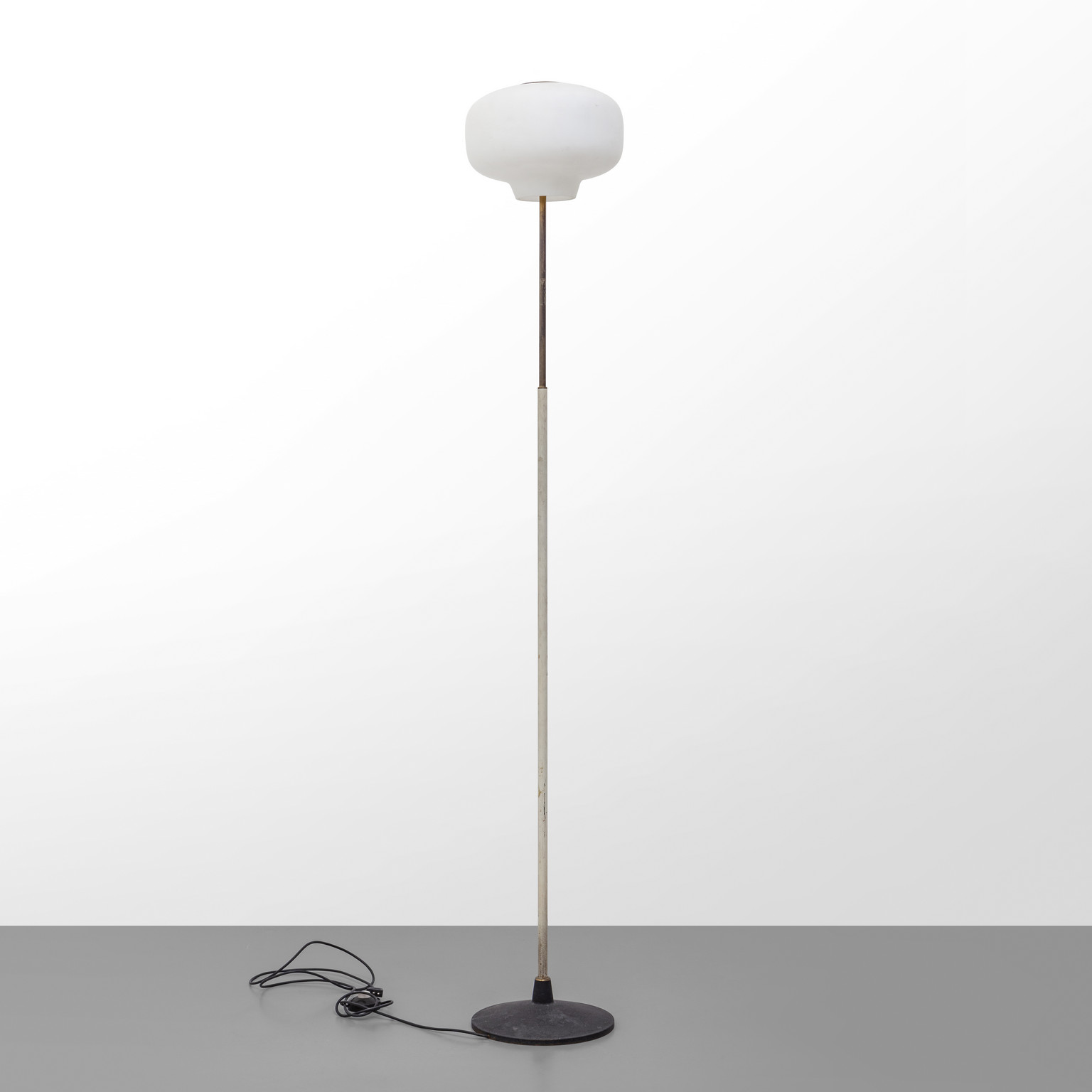 Ghisa verniciata acciaio tubolare verniciato ottone vetro opalino satinato perspex bollino Stilnovo.