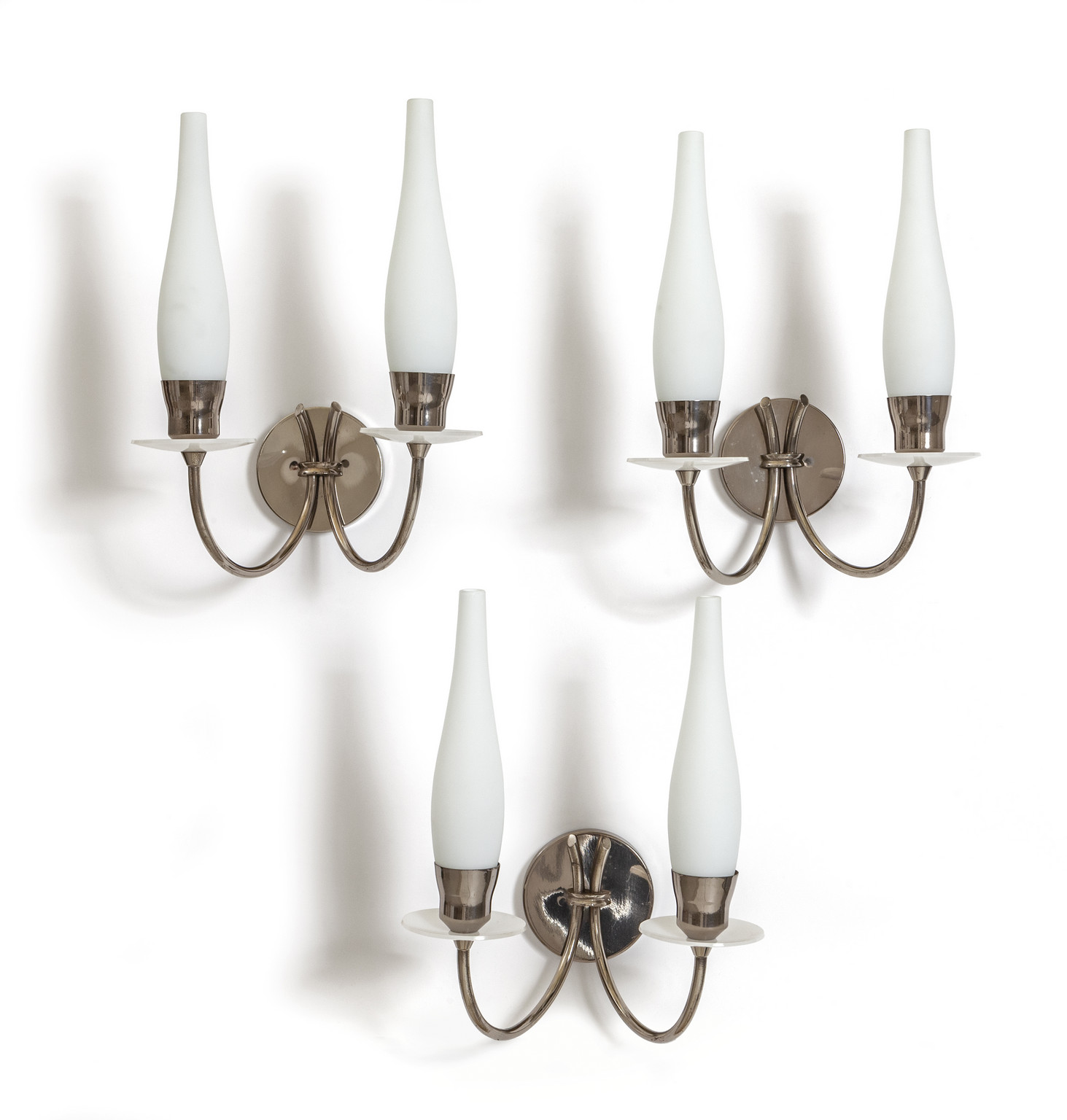 Chrome-plated brass plexiglass and frosted opaline glass.