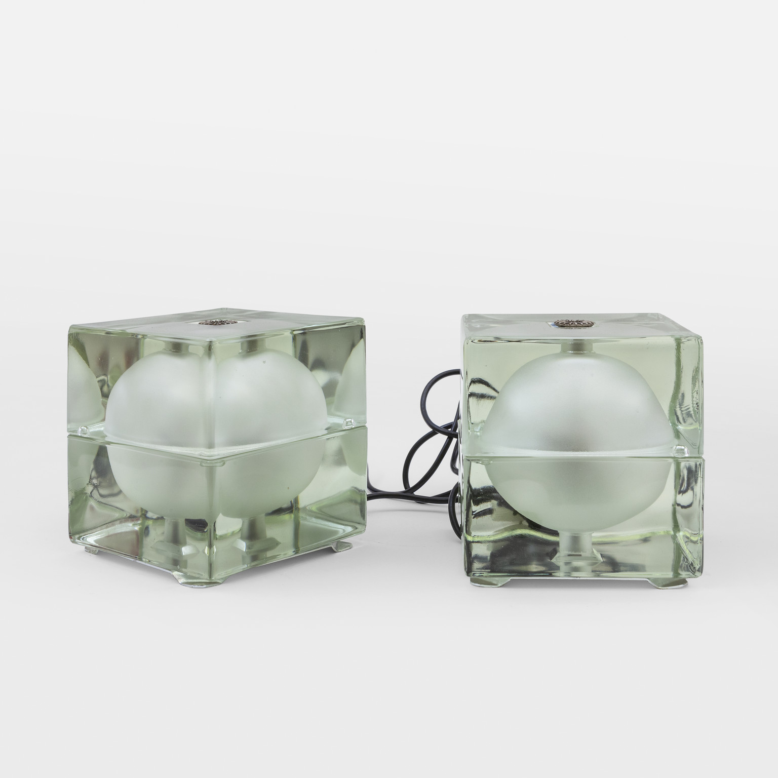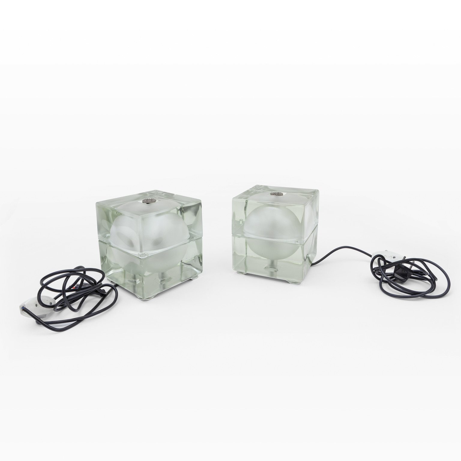 A pair of table lamps 'Cubosfera' model mnufactured by FIDENZA VETRARIA 1968.