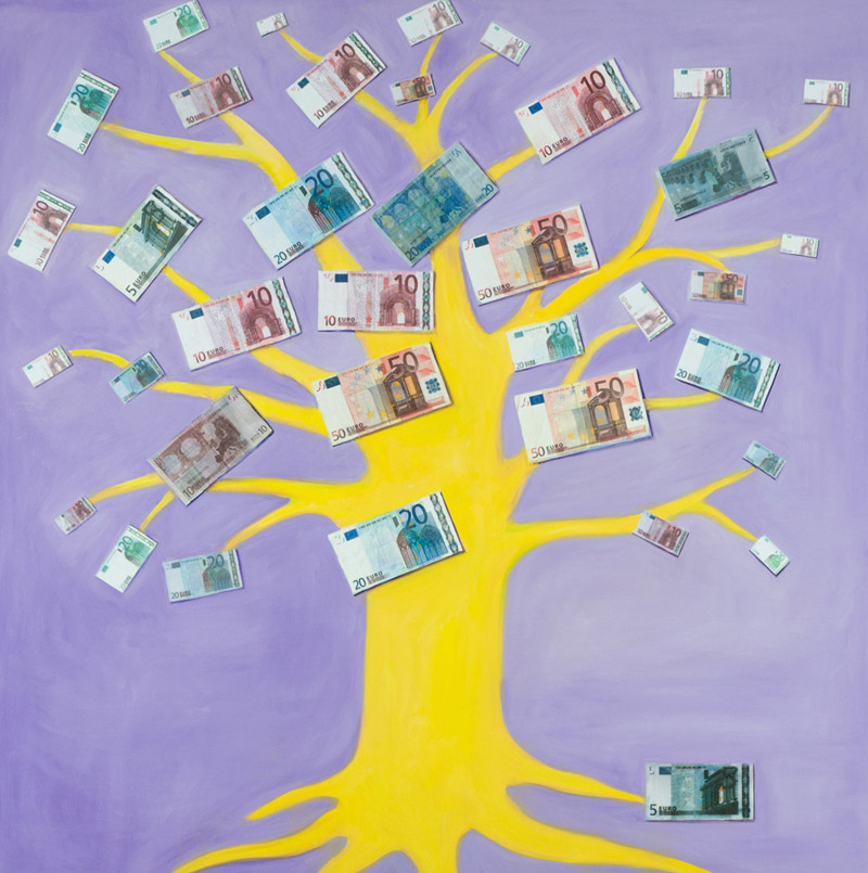 Laura Pacini L'euro, 2011 Olio e collage su tela, cm. 100x100 Sul verso:...