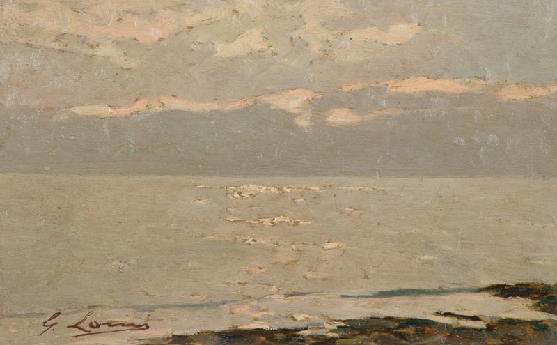 Giovanni Lomi Marina napoletana, 1930 c.a. Olio su tavola, cm. 18x28,5 Firmato in basso a sinistra. Sul verso: titolo. Autentica di Massimo Lomi su foto con Archivio n° 351.