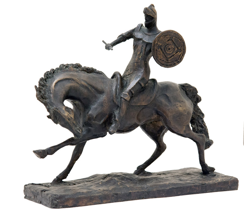 Anonimo Cavallo e cavaliere, 1930 Bronzo, cm. 34,5x36,5x14,5 Firma illeggibile e data sulla base.