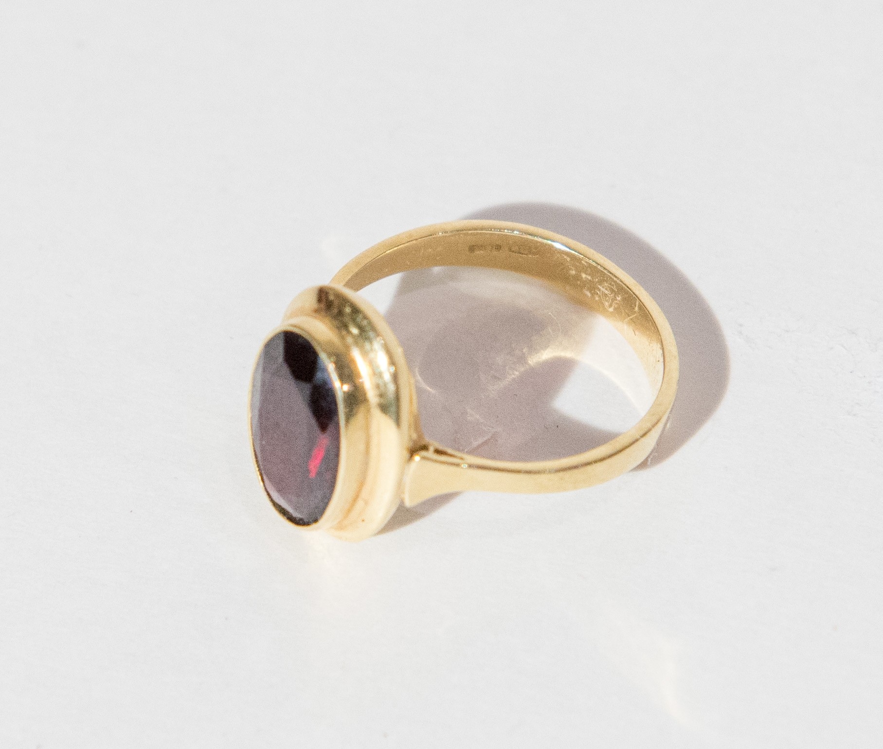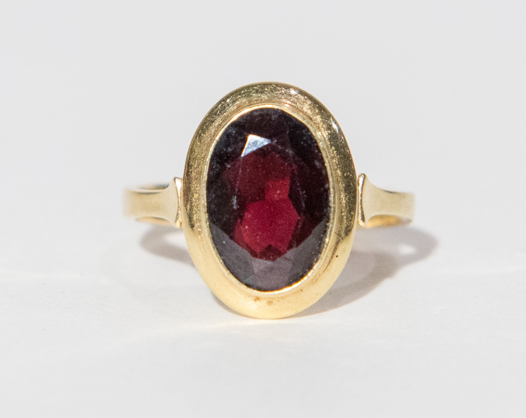 Lotto 10 | ANELLO IN ORO GIALLO 18K Recante granato ovale sfaccettato. Peso complessivo...