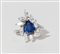 ANELLO IN ORO BIANCO 18K Realizzato con zaffiro blu a goccia posto entro...