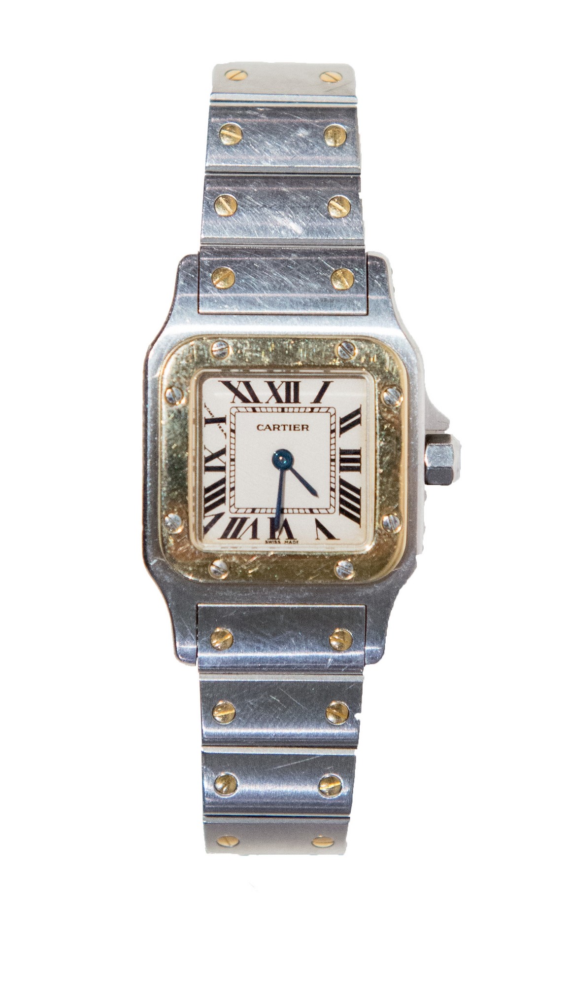 OROLOGIO DA POLSO CARTIER Modello Santos n. 943706CD, cassa in acciaio e oro...