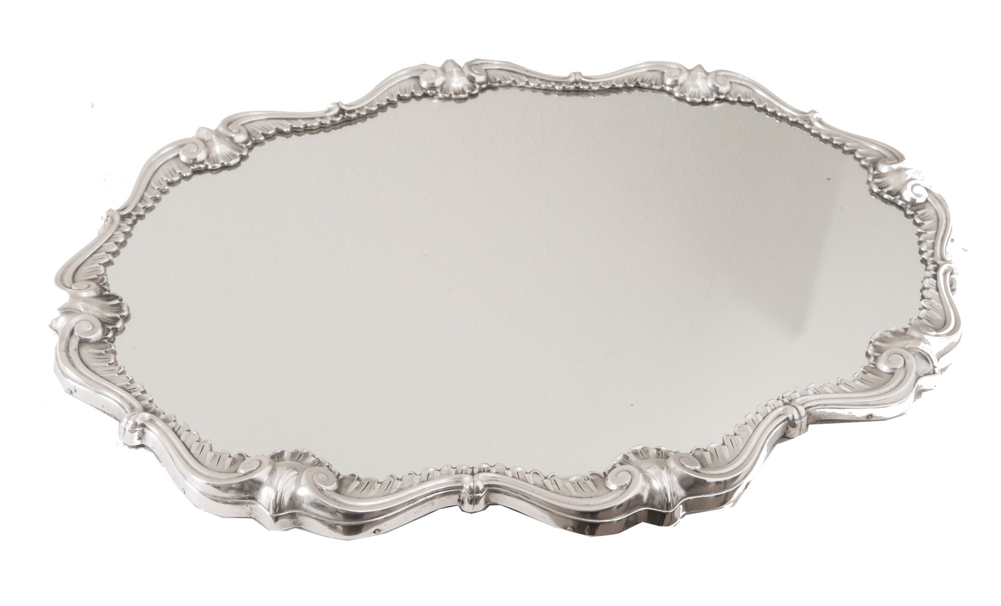VASSOIO SPECCHIERA IN ARGENTO Di forma ovale con sagomatura mistilinea e...