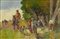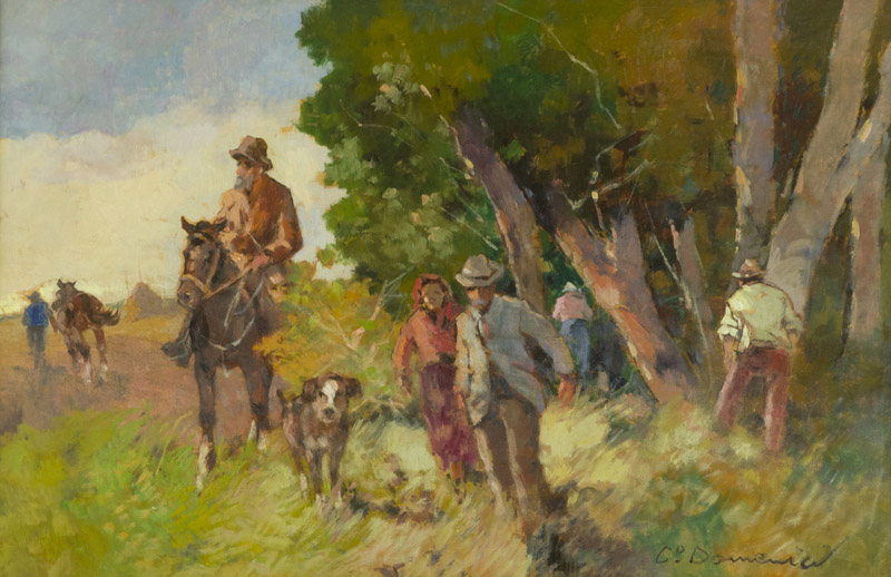 Carlo Domenici Maremmani nel bosco Olio su tavola, cm. 50x75 Firmato in basso a destra. Sul verso: firma, titolo e timbro di provenienza.