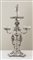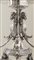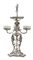 FABERGÈ, Mosca, fine del XIX secolo Importante epergnè in argento. Coppa superiore circolare con bordo traforato e sbalzato ornato da teste, fiere e ghirlande e sormontata da presa a foggia di putto, sorretta da tre teste d’oriente da cui si dipartono tre bracci culminati con tre vasche in cristallo; corpo centrale sorretto da grifoni poggianti su tre sostegni ferini uniti da serpente attorcigliato, base mistilinea ornata da decori floreali, punzoni Bollo con le insegne imperiali - Fabergè - PB 1891 - 84 - Mosca. Peso: gr. 4586. H. cm 72x39x39.