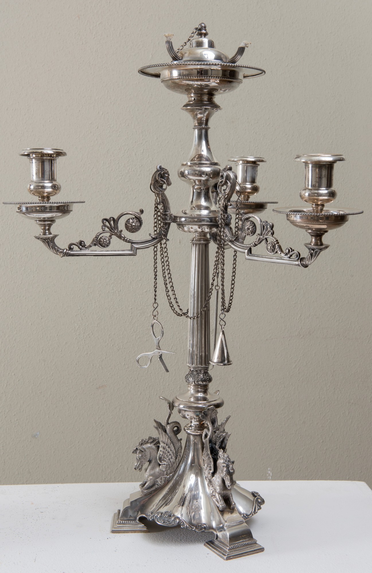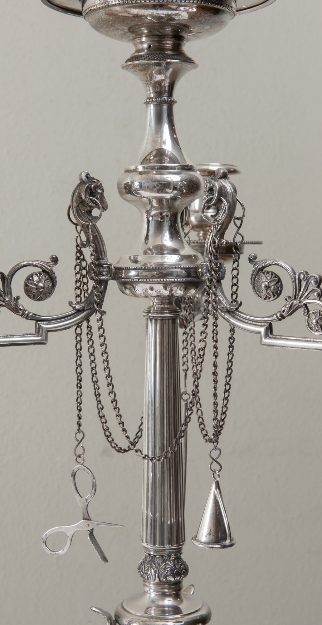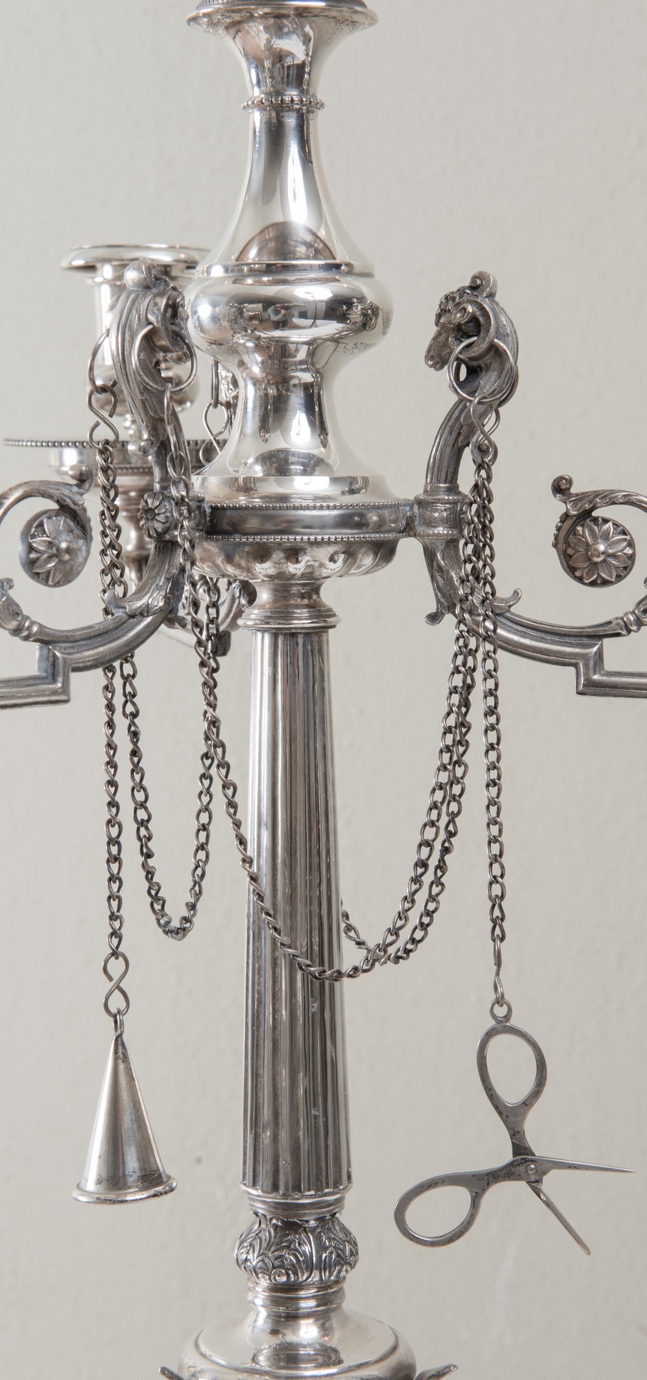 COPPIA DI LUCERNE FIORENTINE IN ARGENTO 800 Complete di accessori e...