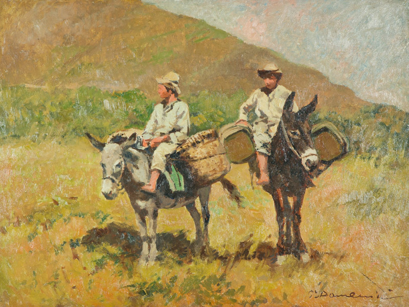 Lotto 1192 | Carlo Domenici Ciuchi e contadini Olio su tavola, cm. 60x80 Firmato in basso...