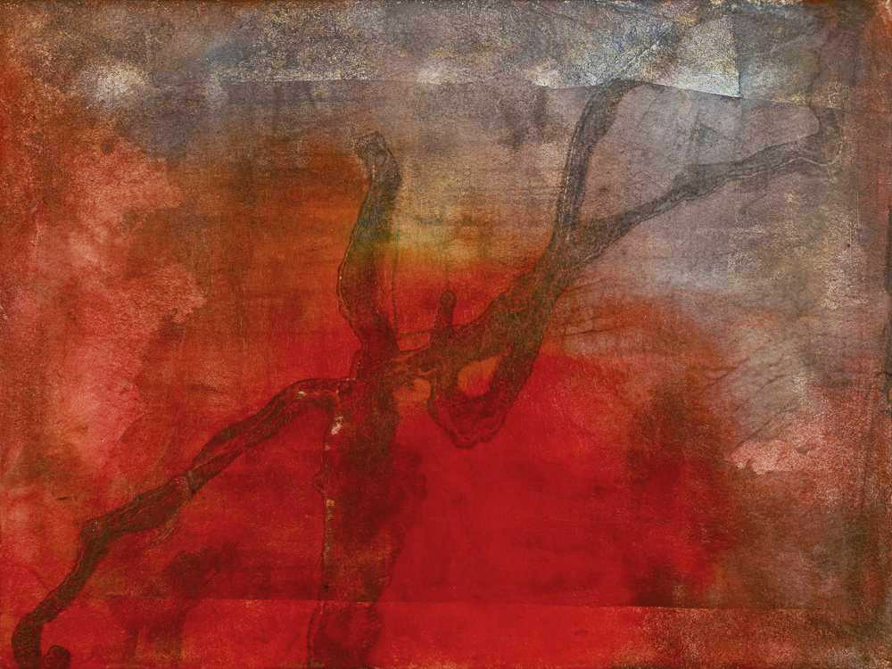 acrilico, combustione e fibra crystal su tela, cm 85x113,5