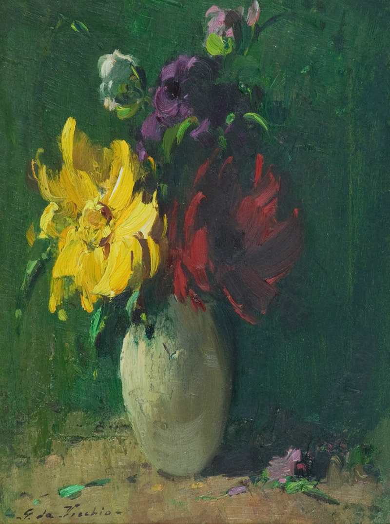 Giulio Da Vicchio Dalie Olio su tela, cm. 40x30 Firmato in basso a sinistra. Sul verso: firma e titolo.
