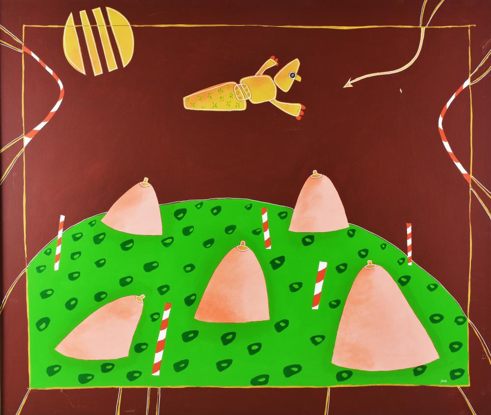 Giuliano Ghelli ROBOMARGHERITA VOLA SUL PRATO DEI SOGNI FREUDIANI acrilico su...