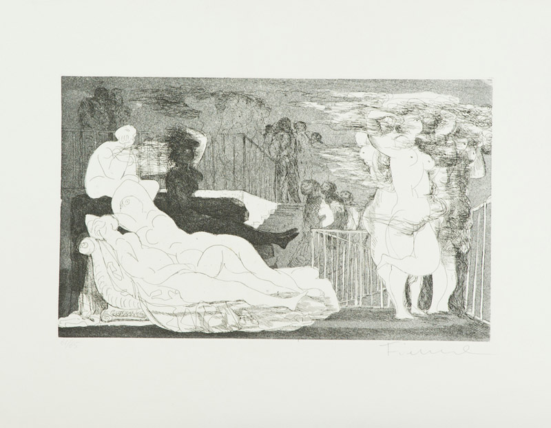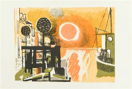 Saetti Bruno, Fiume Salvatore Lotto unico di due Opere - "Bruno Saetti", Paesaggio, Litografia su carta, cm. 48x67,5, es. 15/200, firma in basso a destra, tiratura in basso a sinistra; - "Salvatore Fiume", Senza titolo, Acquaforte di cm. 28,5x46,5, su carta di cm. 50x70, es. 61/65, firma in basso a destra, tiratura in basso a sinistra.