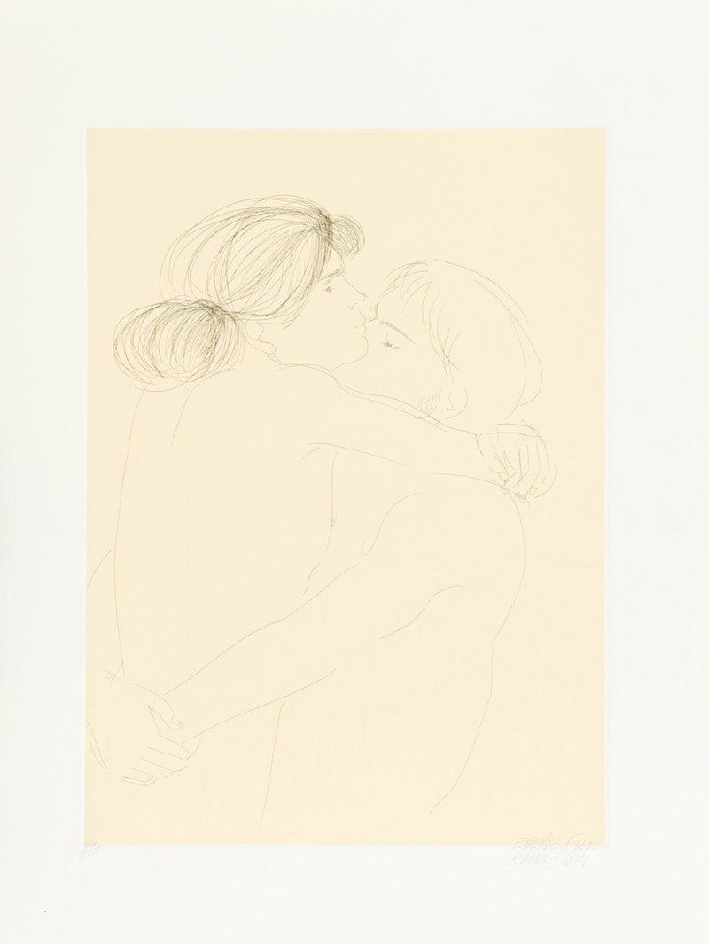 Greco Emilio, Benvenuti Riccardo Lotto unico di due Opere - "Emilio Greco", Abbraccio, 1974, Acquaforte di cm. 49x36, su carta di cm. 70x50, es. XXIV/XXX, firma e data in basso a destra, tiratura in basso a sinistra; - "Riccardo Benvenuti", Figura, Litografia su carta, cm. 70x50, firmato in basso al centro.