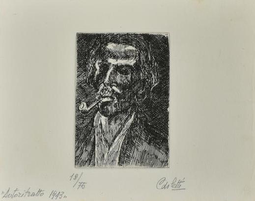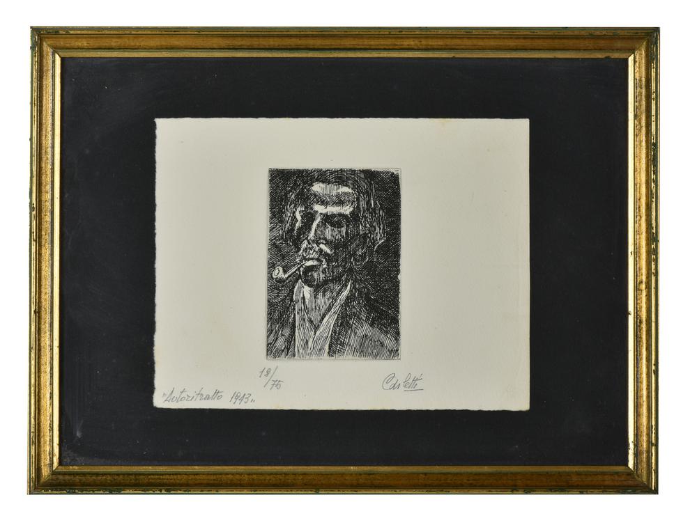 Carletti AUTORITRATTO 1943 incisione su carta, cm 15x19 (lastra cm 10x7) es....