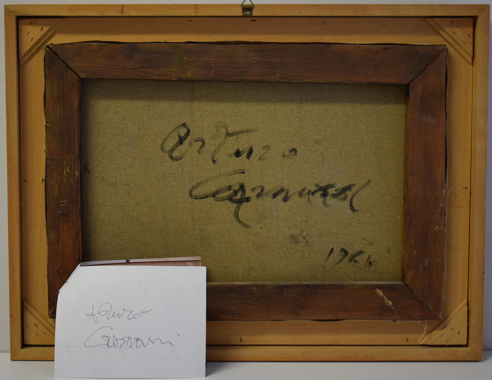 Olio su tela, 53x37 cm; firma in basso a sinistra, firma e anno al retro.