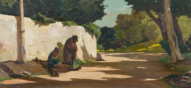 Aldo Affortunati Mendicanti, 1948 Olio su tavola, cm. 22x46,5 Firmato in basso a destra. Sul verso: firma, data e titolo.
