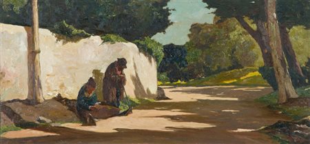 Aldo Affortunati Mendicanti, 1948 Olio su tavola, cm. 22x46,5 Firmato in...