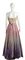 Abito da sera in organza fondo avorio con motivo floreale in viola, celeste e rosa, sottogonna in taffetta bianco