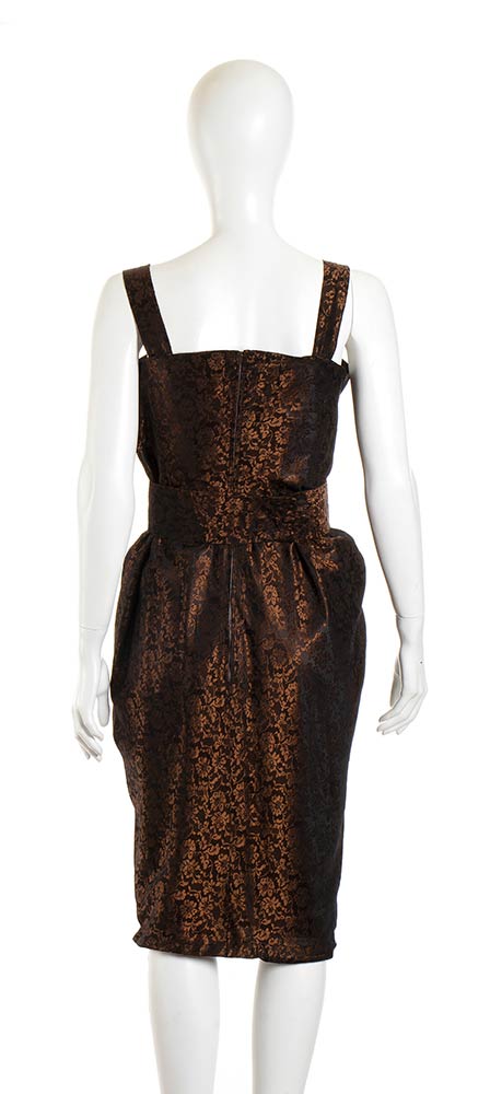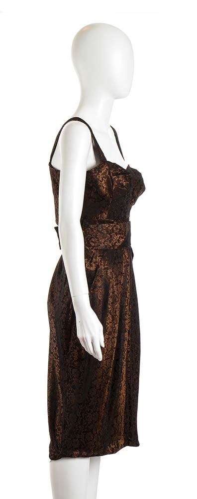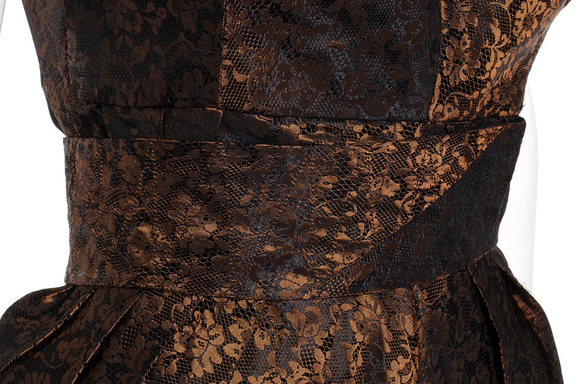 Abito in tessuto misto seta color bronzo jacquard effetto pizzo , Busto 100 cm Vita 80 cm