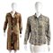 Lotto di 2 articoli 1) Camicia Ken Scott in seta motivo floreale 2) Abito in tessuto Falconetto 1969/70, tessuto misto sintetico con motivo astratto