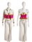 Completo (giacca, pantalone, t-shirt) in cotone bianco con stampa multicolore