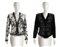 Lotto di 2 giacche 1) Giacca Rocco Barocco in velluto nero e ricami floreali con perline lilla e verdi 2) Giacca Sarli in tessuto completamente rivestito da paillettes bianche e nere, bordi in pizzo nero