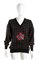 Maglia in lana nera marrone e lurex, ricamo centrale multicolore con disegno di un uccello e floreale