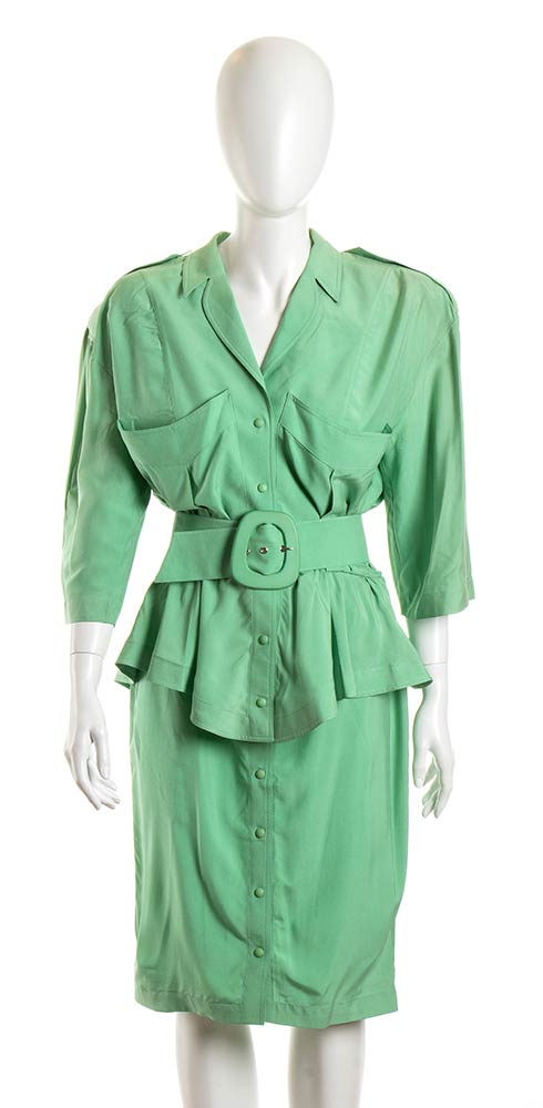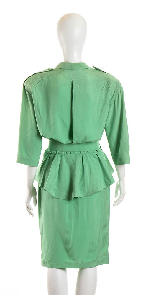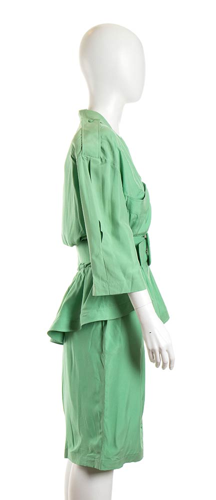 Completo(camicia e gonna) in cotone verde chiaro, cintura