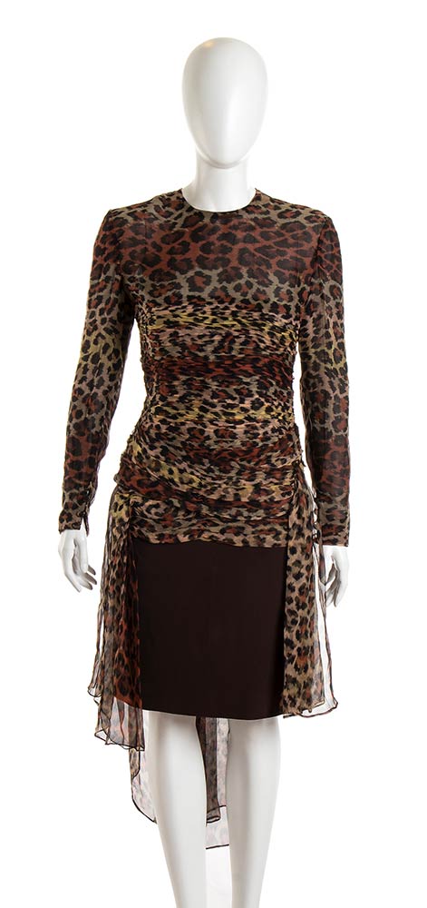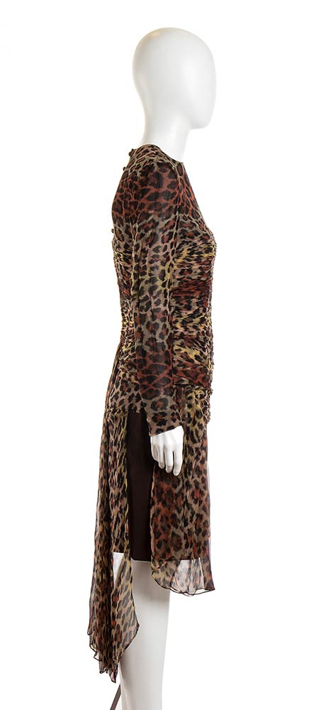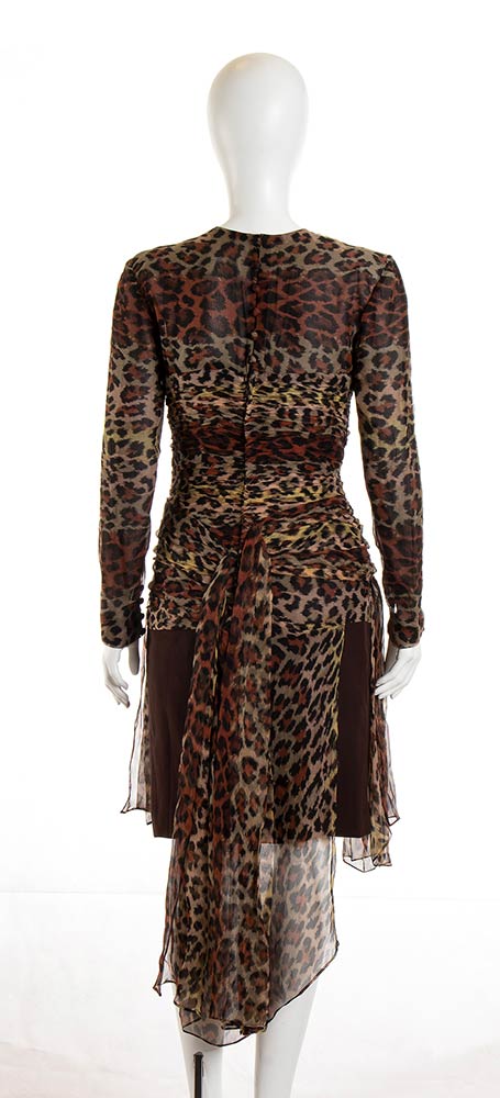 Abito in chiffon stampa animalier e tessuto sintetico marrone