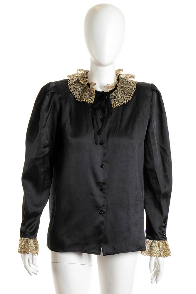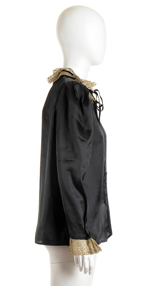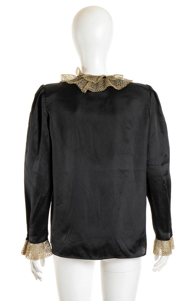 Camicia in raso nero collo e polsi in tessuto a rete dorato