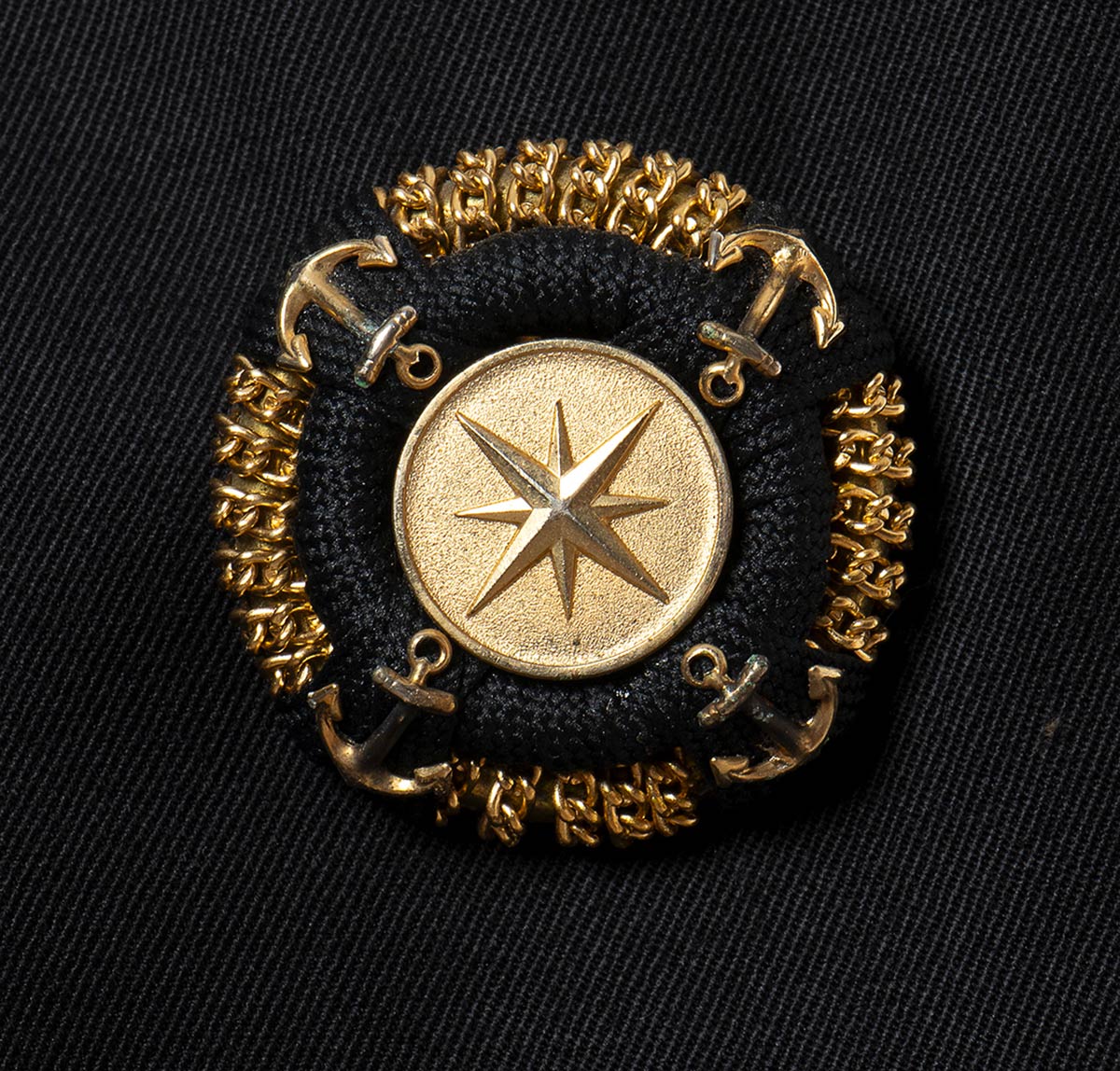 Giacca in misto lana blu scuro, bottoni in passamaneria tema marinaro