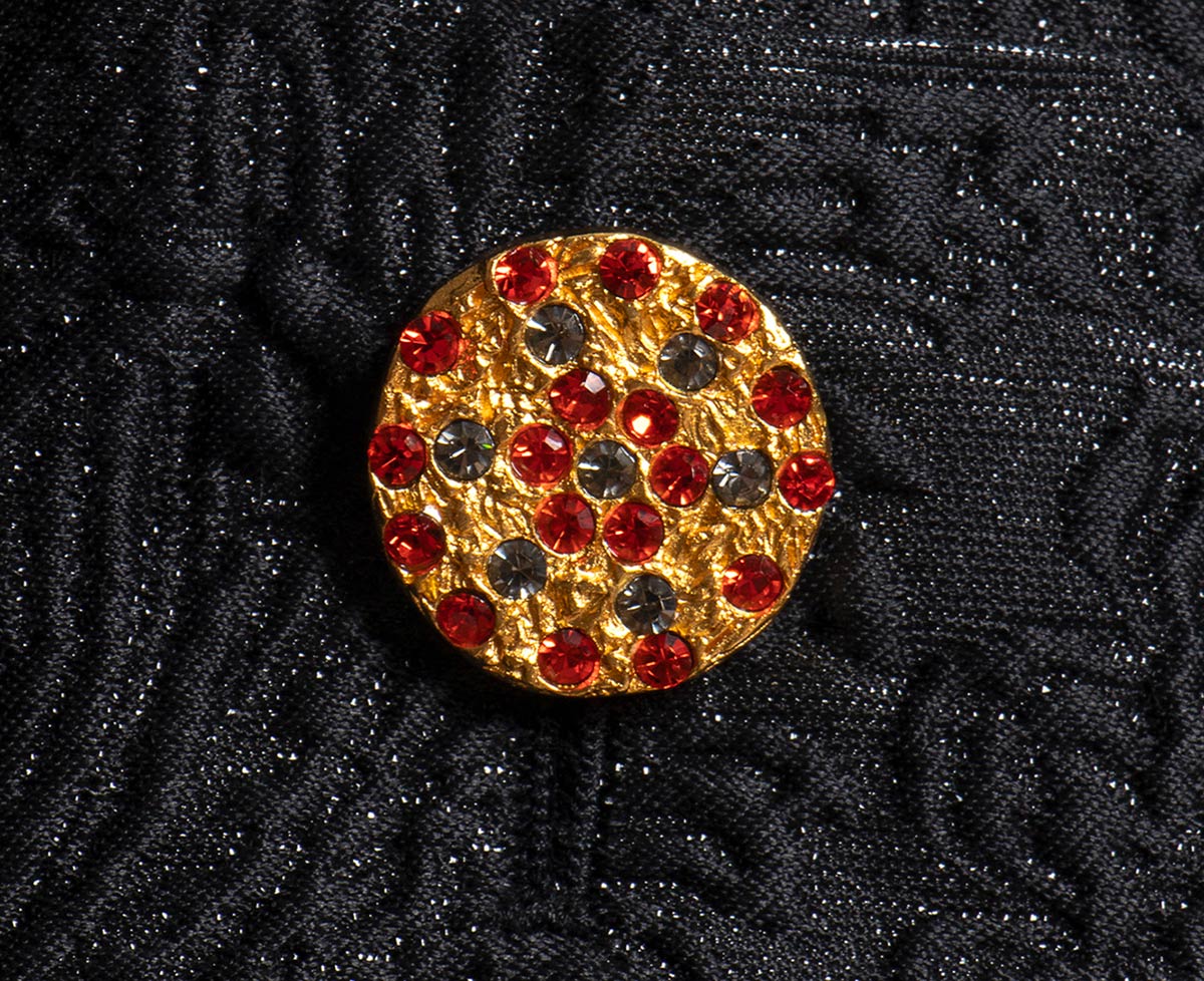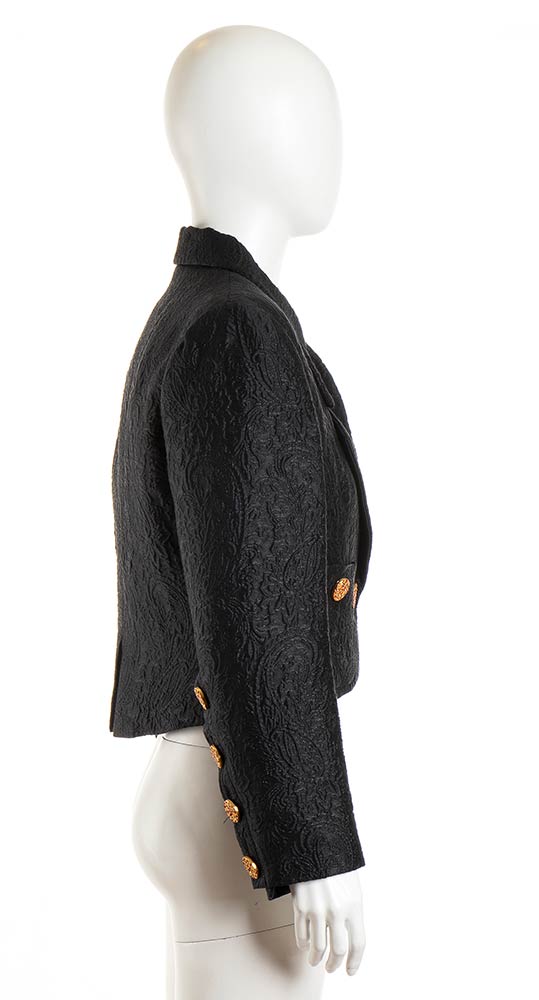 Giacca in tessuto nero matelassè misto con lurex, bottoni dorati con strass