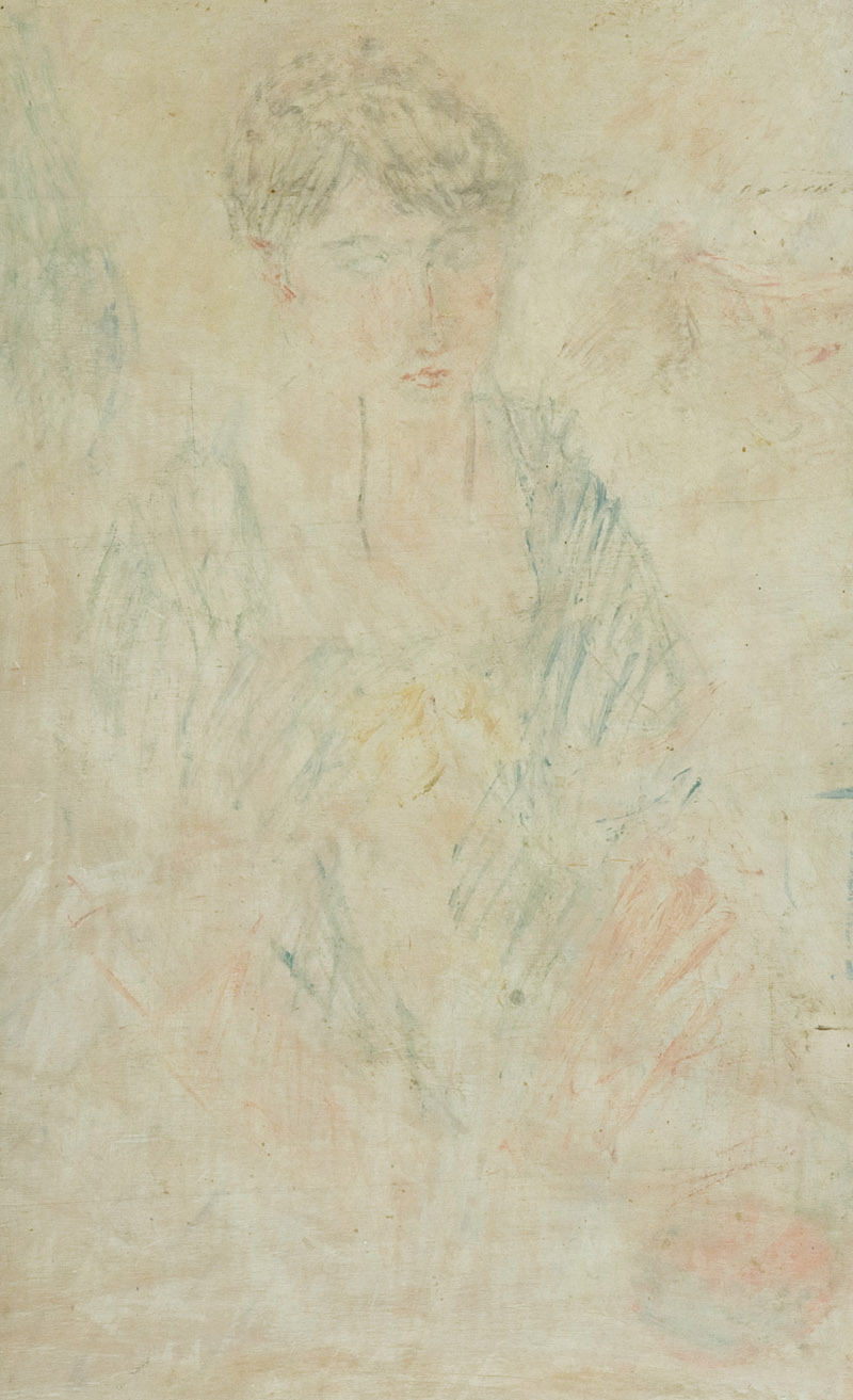 Pio Semeghini Figura femminile Tecnica mista su tavola, cm. 53,5x33 Sul verso: titolo; scritto di Autenticità della moglie "Gianna Semeghini", datato 1973.
