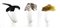 Lotto di 3 cappelli 1) Cappello Gilbert Orcel in raso avorio, tulle e bottone gioiello 2) Cappello in piume di marabou in varie tonalità di giallo, 3) Cappello in feltro di coniglio nero